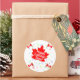Etiquetas festivas com a minha design de uma folha de bordo vermelha com Bandeiras Canadianas, confetti e o texto "Feliz Dia do Trabalho!".