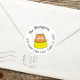 Esta design apresenta feliz milho doce doce de Halloween, etiqueta de endereço preto laranja de retorno, truque ou travessura de na moda, diversão de Halloween, cara sorridente de bobo engraçado, doce doce doce doce de confeitaria de comida, etiqueta de presente de festa de Halloween, queda mínima simples, com letra de texto circular, personalização personalizada personalizada
