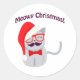 Feliz Natal! Gato bonito com bigode vestindo chapéu e óculos de Papai Noel.