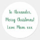 Esta é uma etiqueta de presente de Natal mínima em verde festivo e branco. Tem a mensagem Feliz Natal Amor Mãe xxx no roteiro de tipografia de na moda. Para personalizar, simplesmente mude o nome Alexander para o nome de seu ente querido na caixa de texto personalize. Deseja fazer mais mudanças? Todo o texto pode ser personalizado. Ou, se quiser mudar a cor, basta clicar na ferramenta design e selecionar a cor de fundo que deseja. Torne mais fácil o embrulho de presentes este ano com estes adesivos personalizados modernos para etiquetas de presentes! Feliz Natal! Para obter ajuda com a personalização, produtos correspondentes ou para um email de design personalizado: ursuladawnmoon@gmail.com
