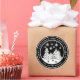 Feliz Natal Feliz Feriados de inverno Etiquetas personalizadas de Etiquetas de nome de inverno mostram o texto "Feliz Natal e Felizes Feriados" em um roteiro branco moderno sobre fundo preto e personalizado com seu nome em volta de uma casa com árvores de Natal e flocos de neve. Perfeito para favoritos para festas de Natal e presentes de Natal ou no escritório para produtos ou correio. Elaborado por ©Evco Studio www.zazzle.com/store/evcostudio