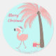 NewParkLane - Adesivos de Natal Personalizados, com uma cena tropical com um flamingo rosa fofo usando um chapéu de Papai Noel, e uma palmeira rosa decorada com presentes de Natal.