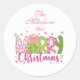 Adicione uma faísca festiva aos seus presentes de férias, envelopes ou favoritos para festas com este adesivo de Natal redondo com tipografia divertida e um design de inspiração doce. A palavra "Feliz" é trazida à vida em cor-de-rosa e verde texturizados, com uma árvore de Natal caprichosa como "E", acentuada pela escrita reluzente e pelos flocos de neve. Personalize com seu nome de família e ano para um toque animado sazonal.