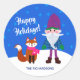 Feliz Natal Gnomo Fox Snowflakes Personalizado Blue Classic Round Sticker Esta linda raposa de Natal e gnomo estão prontos para desejar aos seus amigos e família Felizes Feriados. Este adesivo de Natal é a etiqueta perfeita para entregar presentes para os seus amigos ou vizinhos. Sua família também vai adorar este doce adesivo na bolsa de presentes. Torne o feriado de todos um pouco mais especial com um presente personalizado de você.