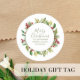 Esta design apresenta um adesivo clássico de tipografia de natal alegre com verde e vermelho, perfeito para etiquetas de presentes, com folhagem verde e groselhas vermelhas