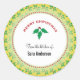 Este adesivo redondo apresenta um padrão de Natal verde em fundo dourado, um círculo branco no centro com o texto: MERRY CHRISTMAS da cozinha de: (e texto personalizável para você adicionar seu nome). Este adesivo personalizado é perfeito para selar doces de Natal que você fez como presente para uma pessoa especial.