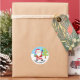 O adesivo de Natal Whimsical apresenta o Pai Natal como um presente e acenando para você de um fundo de neve. O texto, em baixo vai o adesivo, "Feliz Natal" pode ser personalizado. Estes adesivos são excelentes para pacotes e envelopes de cartão de Natal.