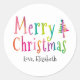 Personalize este adesivo de Natal bonito com seu nome ou texto pequeno. A design apresenta um texto colorido de "Feliz Natal" e uma árvore pequena.