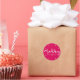 Um adesivo cor-de-rosa de joia festiva com texto Feliz de Natal e pontos bonito de aparência de ouro.