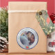 Esta elegante etiqueta adesiva personalizada apresenta uma fotografia de exemplo no centro que pode ser substituída por uma fotografia da sua própria família ou outra imagem personalizada. Uma amostra de saudação de Natal e nome da família são impressos no topo. Um quadro circular apresenta uma borda azul esparsa e brilhante e falso e centro de folha prateada. Uma poinsettia vermelha festiva é colocada no fundo.