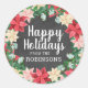 Um adesivo de Feliz Feriados personalizado com plantas coloridas de poinsettia ao redor da fronteira e um fundo negro de quadro negro. Um adesivo colorido para cima de seus favores e presentes festivos.
