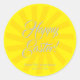 Felz pascoa amarelo-sol cinza texto de script bonitinho Clássico Round Stickers Elegante texto personalizável de script