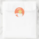 Um pintinho giro, que eclode de um ovo, está sentado num círculo cor de laranja pálido com a saudação "Felz pascoa".