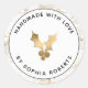 Mármore Dourado e Holly Artesanal com Amor Presente de Natal Personalizado Adesivo Redondo Clássico... Você está fazendo roupas artesanais, enfeites ou acessórios para presentes de Natal este ano? Nosso adesivo/rótulo de presente de Natal exibe um padrão de mármore branco e dourado falso elegante em torno do texto: "Artesanal com Amor" e "por Seu Nome". Você pode facilmente alterar seu nome e o nome do produto no modelo de personalização.