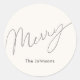 Este adesivo de Natal/feriado minimalista e "feliz" gráfico apresenta um fundo branco com letras de script. Personalize-o para as suas necessidades. Você pode encontrar produtos correspondentes na minha loja.