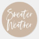 Vestir seus envelopes de férias com nossos adesivos de férias do Sweater Weather! Os adesivos de férias bonitos contêm as palavras "Doce Clima" em uma letra branca, escrita à mão contra um fundo bege.