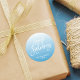 Adesivo redondo Feriados Feriados mais Felizes, com as palavras "Feriados Mais Felizes" num script de pincel divertido contra um fundo de gradiente azul. Faz um adesivo de excelente nos feriados de Natal/inverno. Veja outros itens de feriado aqui https://www.zazzle.com/collections/holiday_christmas_new_year_cards-119015800351034065?rf=238364477188679314 Personalize-o substituindo o texto do marcador de posição. Para obter mais opções, clique no botão "Personalizar". *Observe que a Marca d'água do Zazzle que aparece na visualização de zoom NÃO aparecerá no produto impresso final. © Rosewood e Citrus