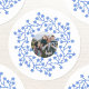 Adicione sua própria foto a este design de festas festivas, azul e branco, moderno, escandinavo. Faz uma família encantadora. Crédito da fotografia: Fotografia © Storytree Studios, Stanford, CA