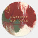 Este design abstrato pintado moderno apresenta cores de tinta padronizadas em tons de vermelho escuro, verde-floresta, ouro, bege e e marfim misturados em um padrão fascinante. Texto Dourado expõe "FÉRIAS MAIS FELIZES" em moderno e elegante fonte. Estes autocolantes estão disponíveis em 2 tamanhos: mostrados aqui no pequeno tamanho de 1/2 polegadas de diâmetro - excelente para usar como selos de envelopes nos cartões de natal, como etiquetas de favorecimento ou adesivos de presente. O tamanho maior de 3 polegadas de diâmetro é uma escolha excelente para colocar em favores, pacotes e muito mais em festas de férias!