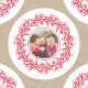 Adicione a sua própria foto a este design de festas festivas nórdicas vermelho e branco. Crédito da fotografia: Fotografia © Storytree Studios, Stanford, CA