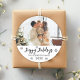 Elegante moderno Script preto-e-branco "Feriados felizes" Família de Script de Caligrafia Feriado de Natal Grande Vinheta Redonda. Apresenta um fundo de flocos de neve fofinhos (neve), nome da família e ano. Excelente para acessórios de correspondência Envelope selos e adesivos para presentes.