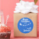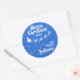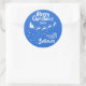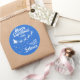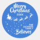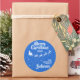 Mostre o quanto você acredita na magia do Natal e do Papai Noel com este adesivo redondo da família de Natal com a silhueta de Papais noeis de trenó em branco com suas renas, voando em uma trilha de estrelas. A legenda no topo lê Feliz Natal em letras brancas manuscritas. O texto é facilmente personalizável com seus desejos, ano e nome da família ou nome comercial. Este adesivo faz o perfeito selo de Natal para desejos familiares ou pode ser usado para decorar seus presentes de Natal