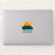 Belo laptop de férias de lago familiar ou adesivo de garrafa d'água apresentando as bonito águas azuis sob a floresta de árvores e legal pôr do sol laranja. Uma viagem de acampamento bonito mantém o souvenir para o seu grupo de excursões naturais ou selvagens.