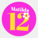 Celebre um aniversário especial de 12 com este botão de crachá de pinos para gráficos de flores cor rosa-quente, amarela e branca. Personalize este crachá etário com o nome da sua aniversariante. Outras idades estão disponíveis. Projetado por www.mylittleeden.com