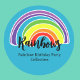 Bonito arco-íris brilhante em um adesivo azul. Obrigado por celebrar minha festa de aniversário do arco-íris comigo.