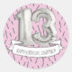 Celebre seu décimo terceiro aniversário em estilo com esses bengala de festa de aniversário divertida e festiva. Estes adesivos redondos apresentam um número prateado de treze balões de hélio em forma de gráfico contra um fundo cor-de-rosa e estilo confetti de cinza. Personalize facilmente esses suprimentos de festa de aniversário de 13 com seu nome, usando o preenchimento no campo modelo de vazio. São perfeitos para festas de aniversário para meninas e excelentes para decorar bolsas boas, usando como selos de envelopes ou personalizando a decoração do seu partido.