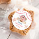 Vinheta-redonda clássica de Festa de aniversário de animais de criação cor-de-rosa