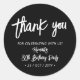 Este simples obrigado personalizado que você adesivo adicionará detalhes de na moda ao seu dia especial. Este design apresenta o script de letra de pincel chic " Obrigado" com texto personalizado. Você pode personalizar o texto para qualquer evento. Convites de aniversário e material de festa correspondentes estão disponíveis no meu compro BaraBomDesign.