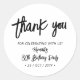 Este simples obrigado personalizado que você adesivo adicionará detalhes de na moda ao seu dia especial. Este design apresenta o script de letra de pincel chic " Obrigado" com texto personalizado. Você pode personalizar o texto para qualquer evento. Convites de aniversário e material de festa correspondentes estão disponíveis no meu compro BaraBomDesign.