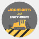 Vinheta-festa de aniversário personalizável do caminhão de construção, cinza e amarelo.