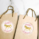 Etiquetas personalizadas de festa de aniversário rosa e dourada com ouro, círculo dourado, fundo rosa.