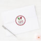 Os adesivos da festa "Holiday Cookie Exchange" com ilustração fofinha de luvas de Natal e design de bolinhas vermelho e branco. Ilustração digital de Kristine Lee. Para obter mais informações, visite www.kristineleedesigns.com