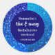 O adesivo redondo clássico para festa de despedida de solteira Blue Glitter Bachelorette Party é um detalhe divertido e cintilante para elevar sua celebração. Projetado com acentos de brilho azul cintilante, adiciona um toque de glamour a brindes, decorações ou convites. Sua forma redonda clássica o torna versátil e fácil de usar em bolsas, caixas, garrafas ou etiquetas de presente. Impresso em material durável, adere com segurança, mantendo seu brilho vibrante. O design elegante combina perfeitamente com festas de despedida de solteira temáticas chiques, modernas ou costeiras. Leve e fácil de distribuir, é uma maneira simples de personalizar seu evento. Personalizável com o nome da noiva ou detalhes da festa, serve como decoração e lembrança. Um toque final glamoroso que une sua celebração de despedida de solte