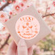 Adesivo Redondo Clássico Festa de Despedida de Solteira Cocktail Laranja Sortudo no Amor