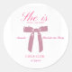 Adicione um toque de charme feminino à sua festa de despedida de solteira com nosso Sticker Redondo Clássico de Despedida de Solteira Girly Pink Coquette! Com uma cor rosa divertida, laços delicados e a deliciosa mensagem "Ela está dando o nó", este adesivo captura perfeitamente a essência do estilo coquette. Seja decorando lembrancinhas ou adicionando um toque especial às suas decorações de despedida de solteira, este adesivo certamente vai deliciar a noiva e seus convidados. Deixe que as festividades brilhem com nosso Sticker Redondo Clássico de Despedida de Solteira Girly Pink Coquette!