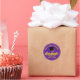 Este adesivo de festa de formatura personalizado moderno, roxo e amarelo, apresenta seu nome de segundo grau ou de faculdade para a classe de 2025. Personalize com o seu ano de graduação com o script manuscrito chic e o boné formando preto para adesivos personalizados de formando de excelente.