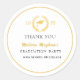 Um obrigado moderno, simples e elegante, que você privilegia o design adesivo, apresenta um fundo branco, inclui uma coroa de riso de ouro e um ícone de boné de ouro para graduação e na moda. Este adesivo é perfeito para uma festa de comemoração. Personalize com seu próprio texto, fontes e cores ou remova e comemore sua festa de formatura.