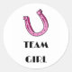 O gênero "Team Girl", maravilhosamente desenhado, revela o adesivo da festa. Este adesivo ajuda a dar o tom para um gênero memorável revelar onde os entes queridos e amigos se reúnem para revelar as notícias interessantes do gênero do seu bebê. Sinta-se livre para personalizar/personalizar este adesivo de acordo com o seu gosto. Tenham um excelente e um gênero memorável revelando a celebração!