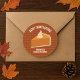 Estes adesivos encapsulam o espírito quente do Dia de Ação de Graças. Eles apresentam uma fatia muito detalhada de torta de abóbora, coroada com creme chicoteado, contra um clássico fundo de xadrez marrom. A mistura harmoniosa de tons laranja, marrom e creme faz desses adesivos uma escolha festiva para selar envelopes, decorar pacotes ou embelezar artesanatos de férias.
