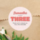 Torne a terceira festa de aniversário especial da sua garota com esses bonitos adesivos favoritos! Apresentando um design de tipografia cor-de-rosa "três" com um padrão floral fofo, essas etiquetas adicionam um toque encantador aos seus pacotes de presentes. O guião caprichoso da caligrafia traz uma sensação elegante, porém brincalhona, perfeita para uma estética minimalista, simples e na moda. Quer você esteja decorando bolsas para vestir ou selando caixas de favores, esses suprimentos de festa divertida são o toque perfeito para o grande dia do seu pequeno!