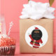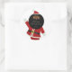 Um adesivo de Papais noeis pretas, giro e dançante em um fundo branco. Diversão, bobo e design original que promove a diversidade durante a temporada de férias. Personalizável e perfeito para presentes e cartões.