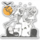 Ilustração de uma festa de Halloween de Skeleton em um cemitério com morcegos e decoração de aranha na lua de cheio