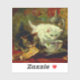 Sticker com a pintura a óleo de Henriëtte Ronner-Knip High Tea (1821-1909). Um gatinho branco e fofo bebe de um teacup e uma tábua borbulha uma massa numa bandeja de chá. Um presente perfeito para amantes de gatos e entusiastas do Romantismo.