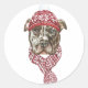 Feliz Howlidays! Adicione um sotaque festivo aos seus cartões, convites e envelopes com este adesivo de férias personalizável. Ele apresenta um pitbull de aquarela vestindo um chapéu de malha e cachecol. Personalize este adesivo pitbull de férias adicionando seus detalhes. Este adesivo de Natal para cães está disponível em outros estoques de cartão.