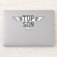 Vestido de efeito prateado para o seu filho. Ele lê Top Son e apresenta asas aviadoras do piloto de prata, e uma estrela de prata. Excelente para a tripulação de formando, pilotos, aqueles que fazem aulas de voo, spotters de avião, aviadores navais e qualquer pessoa que goste de presentes temáticos de aviação. Confira mais presentes de aviação em nossa loja (Occupations / Aviation Aircraft Pilots).