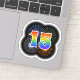 Este design divertido e excitante adesivo apresenta um padrão colorido inspirado em fogos de artifício comemorativos que explodem, juntamente com o número "15" com um espectro multicolorido como o arco-íris ou padrão de gradiente. Um autocolante como este pode ser divertido de usar ao comemorar o décimo quinto aniversário de alguém, ou talvez o décimo quinto aniversário de casamento de um casal, ou qualquer outro evento de 15. [~Z0000362]